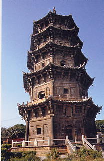 ここで、話はガラッと変わります。福建省泉州に開元寺というお寺があります。左の写真はそのお寺にある二つの塔のうちの西塔です。泉州というのは、唐代からひらけ、宋代には国際的な大貿易港となり、元末まで栄えた港町です。マルコ・ポーロの「東方見聞録」にも「ザイトゥン」という名前で出てきます。 「その貿易額からいって、ザイトゥン市は確実に世界最大を誇る二大海港の一であると断言してはばからない。」(愛宕松男訳『東方見聞録』) さて、この写真の塔をよく見てください。建物は八角形をしています。八角形というのも中々興味ある形なのですが、今は触れません。一階部分、日のあたっているところに注目してください。真ん中に窓のようなものがあり、その両脇に人物らしいものが浮き彫りになっているのがわかるでしょうか。実はここだけではなく、すべての面にここと同様の浮き彫りの像があります。この塔は8角5層ですから、全部で40面あり、1面2像で80像、塔は東西2塔ありますから、合計160の仏教的浮き彫り像があるのです。 その中にこのような壁面があります。実は、右が武帝、左は我らが三蔵法師なのです。写真ではわかりませんが、右の人の右上と左の人の左上にそう書いてありますから間違いはありません。 これまでの研究により、これは玄奘三蔵が帰国後、梁の武帝にお経を差し出しているところであろう、ということになっています(西遊記研究の大御所、太田辰夫氏の説)。 えっ、年代に矛盾がある! そう思ったあなたは、ちょっと鋭い! まあ、そのくらいのことは「ちゅうごくちゅうどく」の読者ならすぐ気がつきますよね。実際、武帝の方が100年ほど前の人物で、こういうシチュエーションは現実としてはあり得ません。 なぜ、このような対が彫られたのか、定かではありませんが、その原因は三蔵法師の方にありそうです。三蔵法師はその偉業により、死後、すぐに伝説化が始まりました。その作業の中で、色々なシチュエーションが生まれたようです。一例を挙げるならば、今昔物語の中の玄奘は、玄宗皇帝の時代の人となっています。 三蔵が天竺から持ち帰ったお経を受け取るのは、仏教を手厚く庇護した梁の武帝がふさわしい、という民衆の願望が、長い時間を経るうちに歴史的事実としの地位を固めていったのではないでしょうか。 さて、この浮き彫りと同じ階にこういう壁面があります。左の人物には「東海火龍太子」という銘文があります。右の人物(?)には何も書いてありません。しかし、これ、見れば見るほど、孫悟空というか、そのご先祖様の「猴行者」に見えてきます。 どこが孫悟空らしくないかというと、武器が違います。この浮き彫り像が刀を持っているのに対し、孫悟空の分身ともいえる如意棒は東海火龍太子の手元にあります。もともと、東海火龍太子の武器であったものをぶんどったのでしょうか?現行西遊記では、東海竜王のところで半ば強奪するノリで如意棒を頂いてくることになっています。私は、この一連の浮き彫りは当時この地で話されていた「西遊記」を反映しているのではと思っています。 泉州が当時、世界最大の港であったことを強調しました。これが示唆するところは、孫悟空の形成に少なからず影響を与えたインドの「ラーマーヤナ」に登場する空飛ぶ英雄的おサル、「ハヌマーン(呼び方は色々あります)」の話が海を渡って(陸からではなく!)、ここ泉州にまず上陸したのでは、ということです。これは同じく西遊記研究の権威、中野美代子氏の仮説で、大変魅力ある説だと思います。 今日はここまでです。まあ、東海火龍太子が出てきたので、「竜にまつわって」いることにしましょう。 目次へ |